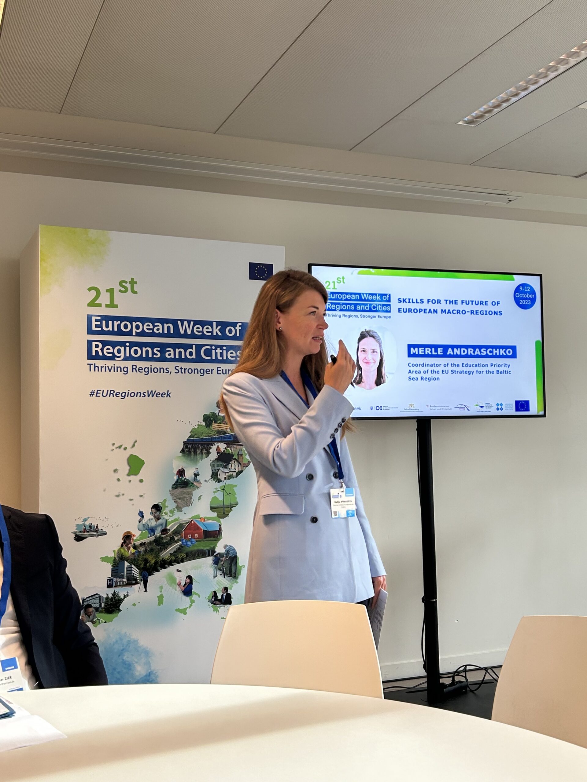 PA 8 had on Oct 10th, 2023, the opportunity to work together with PA 9 “People and Skills”, at the event “Skills for the Future of European Macro-Regions” in the framework of the 21st European Week of Regions and Cities in Brussels, organized and moderated by Nadija Afanasieva and Mykhailo Omelchenko from the Ukrainian Institute for International Politics.