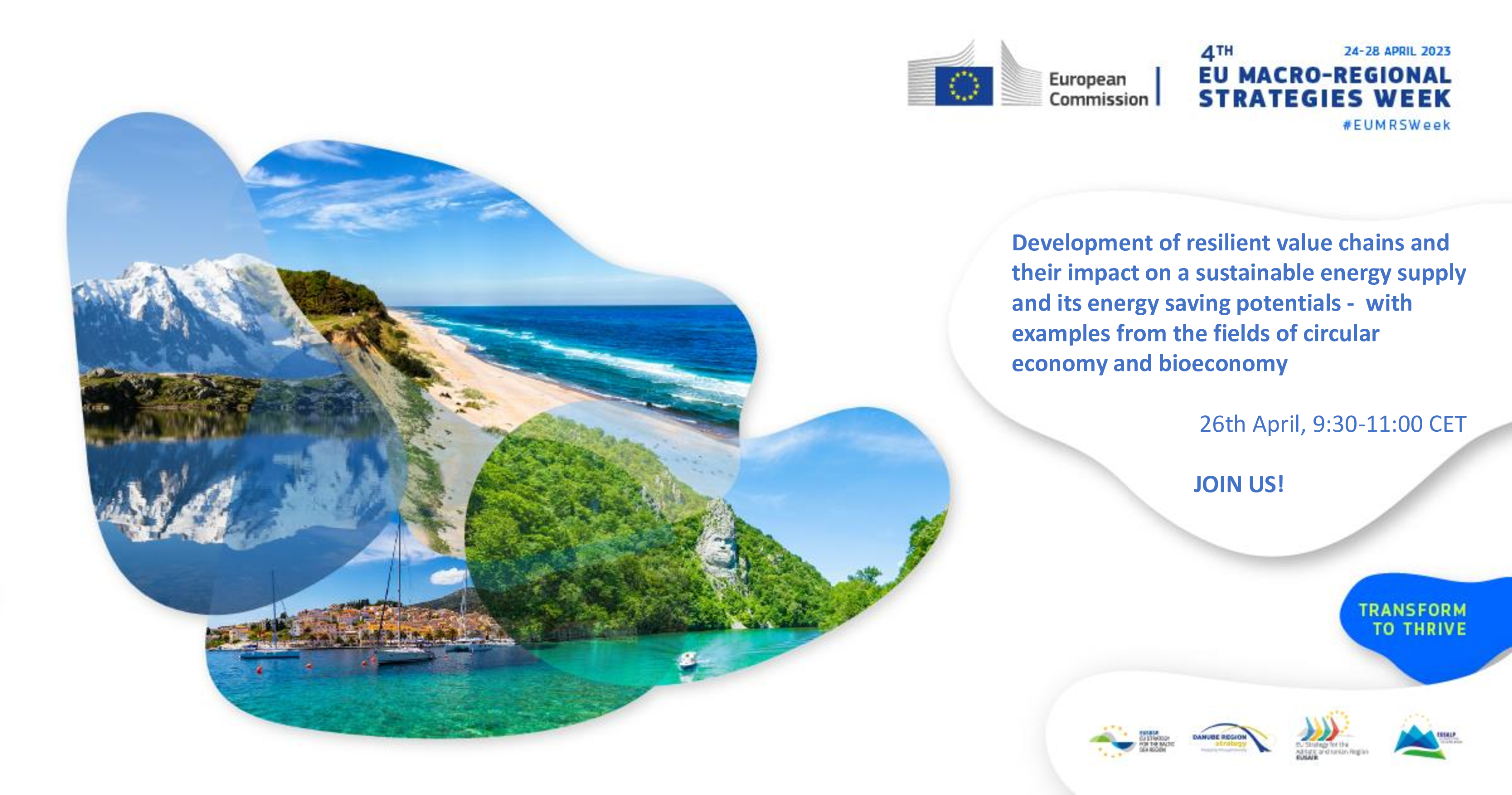In cooperation with EUSALP and EUSBR PA8 was selected to organize a session within the framework of the 4th EU MRS week concerning the “Development of resilient value chains and their impact on a sustainable energy supply and its energy saving potentials – with examples from the fields of circular economy and bioeconomy“.